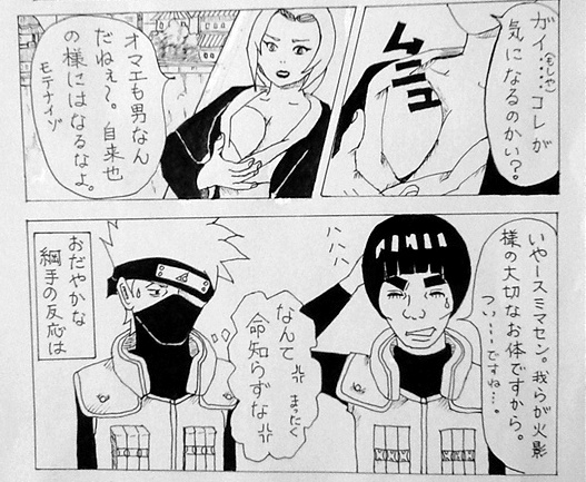 「袋とじ」「ガイ」「ナルトが放り出す」「筋肉」というワードからすると、